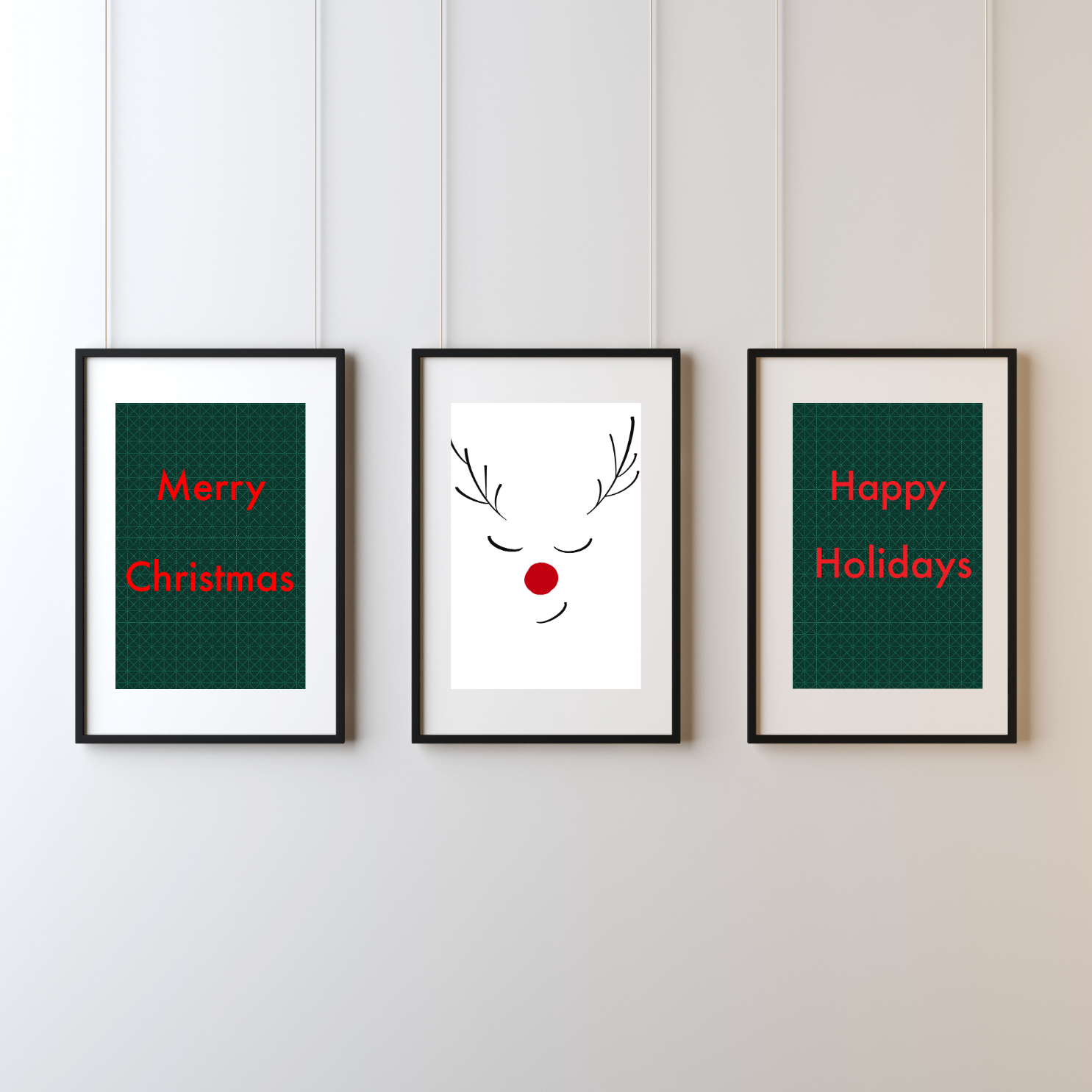 Happy Holidays Geometric wall print only, other prints are shown for illustration purposes