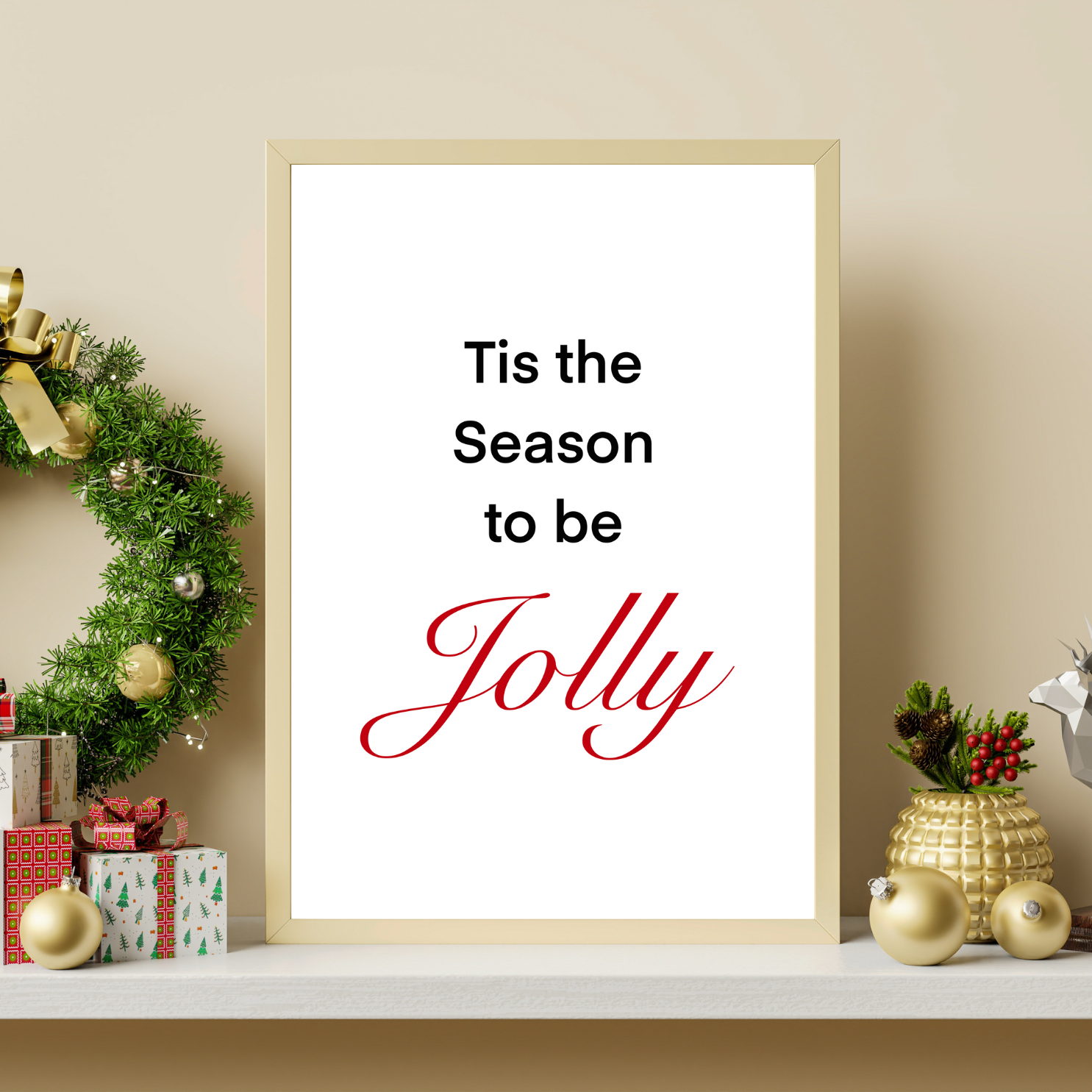 Celebrate the magic of the holidays with this beautifully designed “Tis the Season to be Jolly” wall print. Its combination of modern simplicity and classic Christmas elegance makes it the perfect statement piece for living rooms, hallways, entryways, or festive gallery walls. Ideal for holiday decorating, gifting, or adding joyful seasonal cheer to any space.
